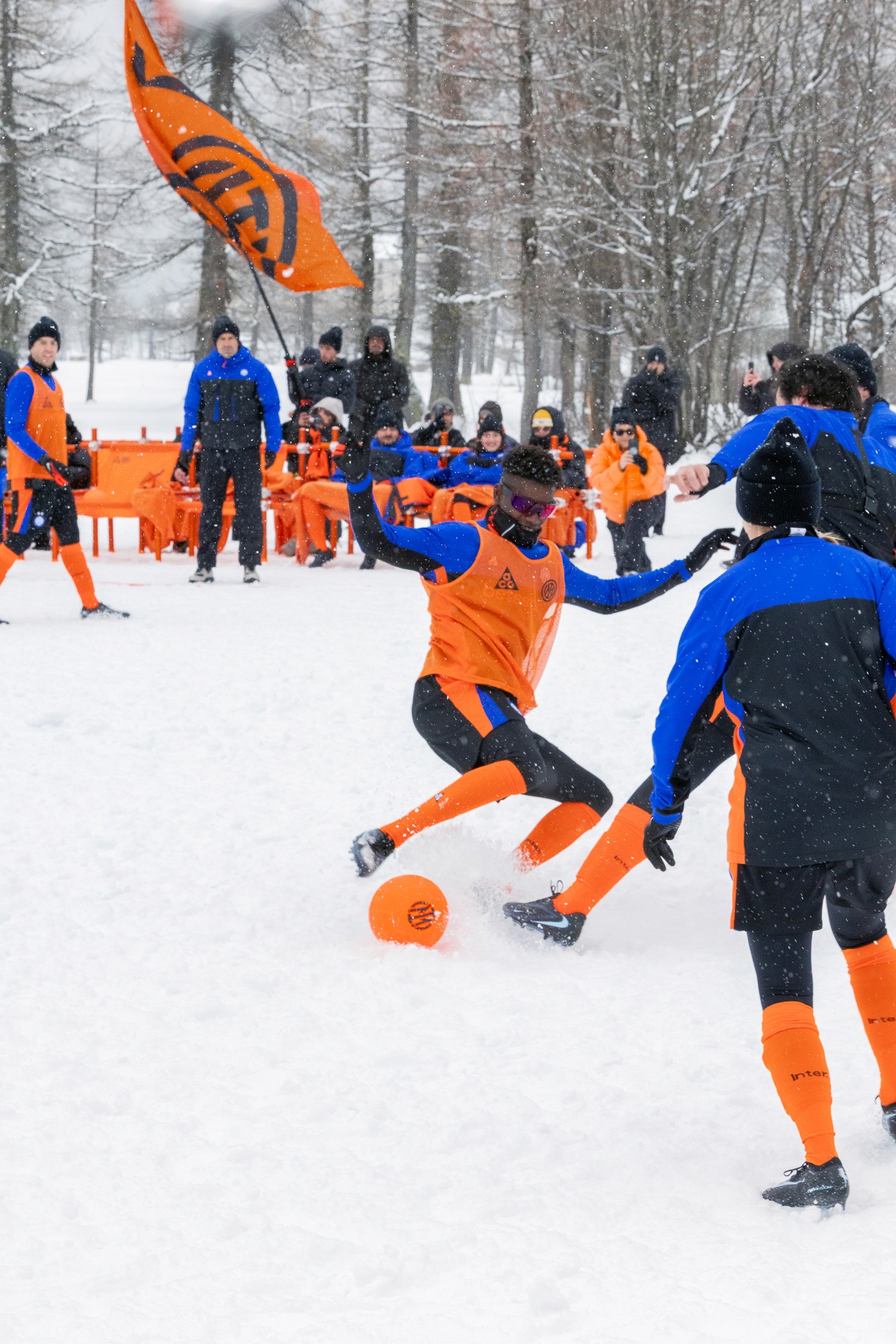 A tak najednou hraješ fotbal. Uprostřed zimy, v Alpách. Všechno je ACG oranžové. Žádné ideální podmínky. Jen pohyb v jeho syrové podobě. ACG neslibuje produkt. Slibuje jeho chování. All Conditions Gear. A to dokáže doručit mimo obchod.